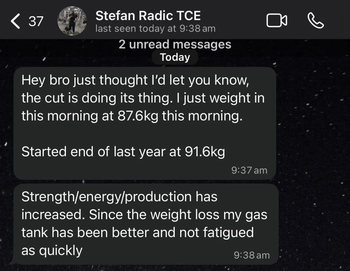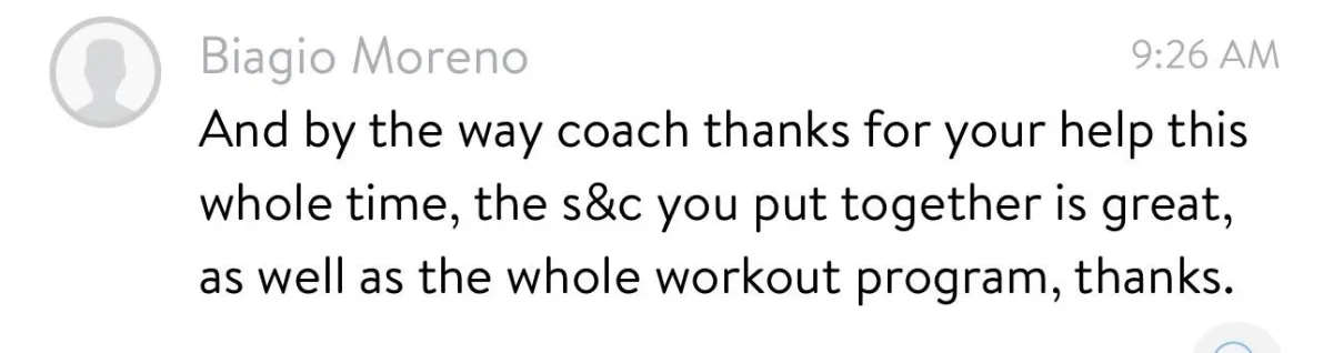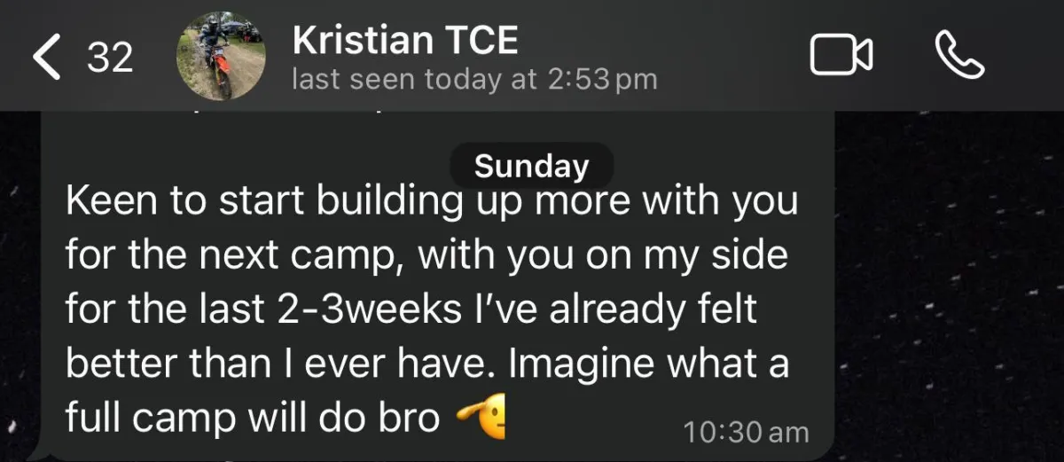 With an average touch point from successful athletes that work with us of 2-3 written or voice messages a week, the check in form submitted and training videos submitted from each session, that's literally all it takes to see improvements.