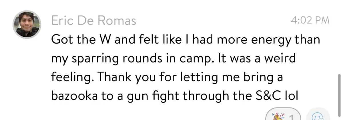 We tend to stray away from working with athletes who are after a quick fix, because that's not how this works. The best martial artists you look up to are working with S&C and Nutrition coaches YEAR ROUND. With The Combat Engine, the same philosophy applies and the best results you've seen from us come from commitment to improvement year round.