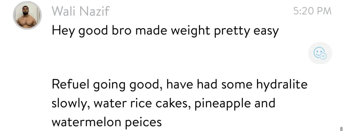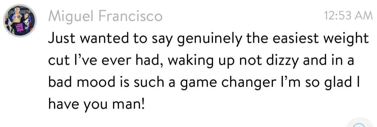 I travel for weight cuts and fight week preparation so long as total costs are covered by the athlete, but the majority of our successful weight cuts are facilitated through the online systems/resources and custom guidance.